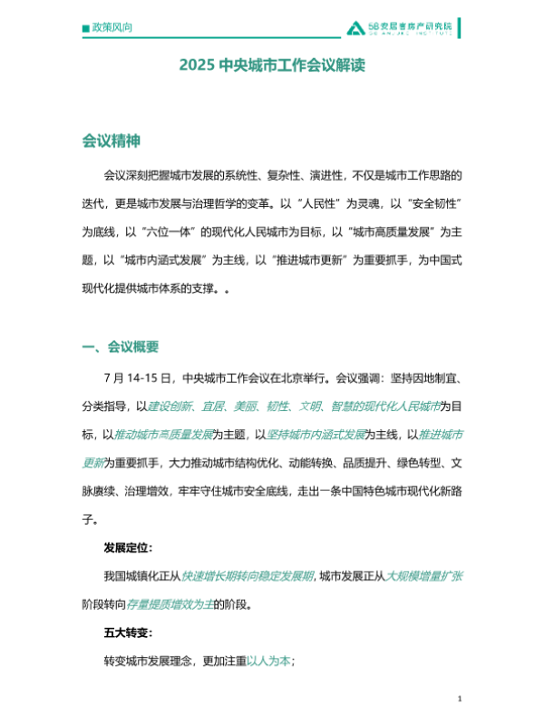 【58安居客研究院】【202507】2025中央城市工作会议解读-6页 政策文件