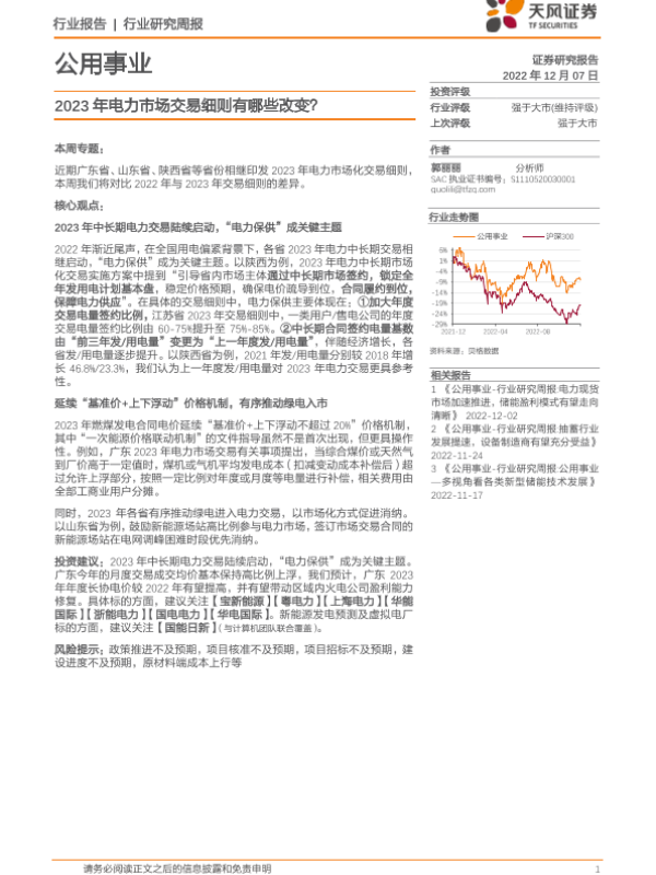【天风证券】【20221207】2023年电力市场交易细则有哪些改变-12页 行业研究