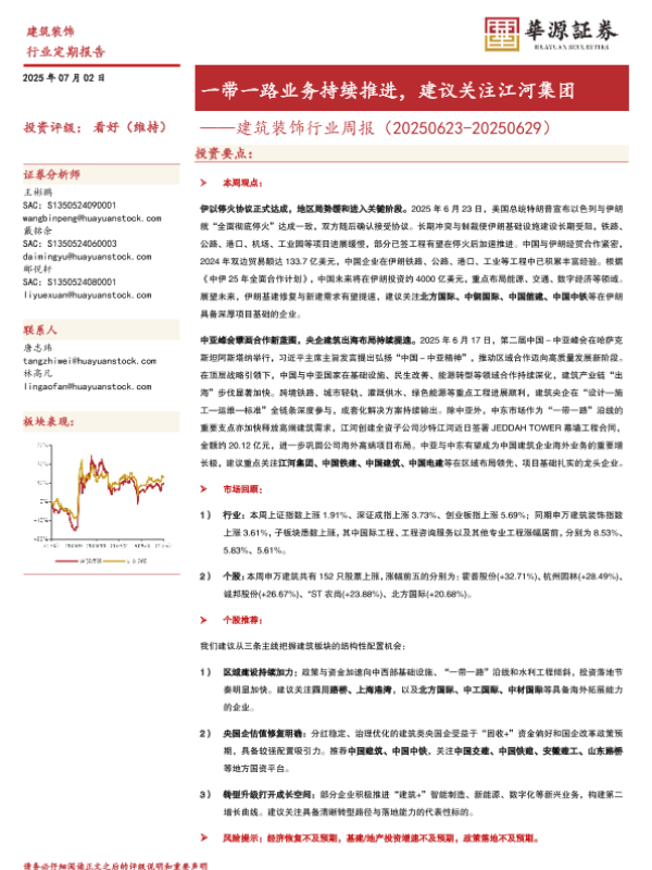 【华源证券】【20250702】建筑装饰行业周报:一带一路业务持续推进,建议关注江河集团-11页 证券期货研究报告