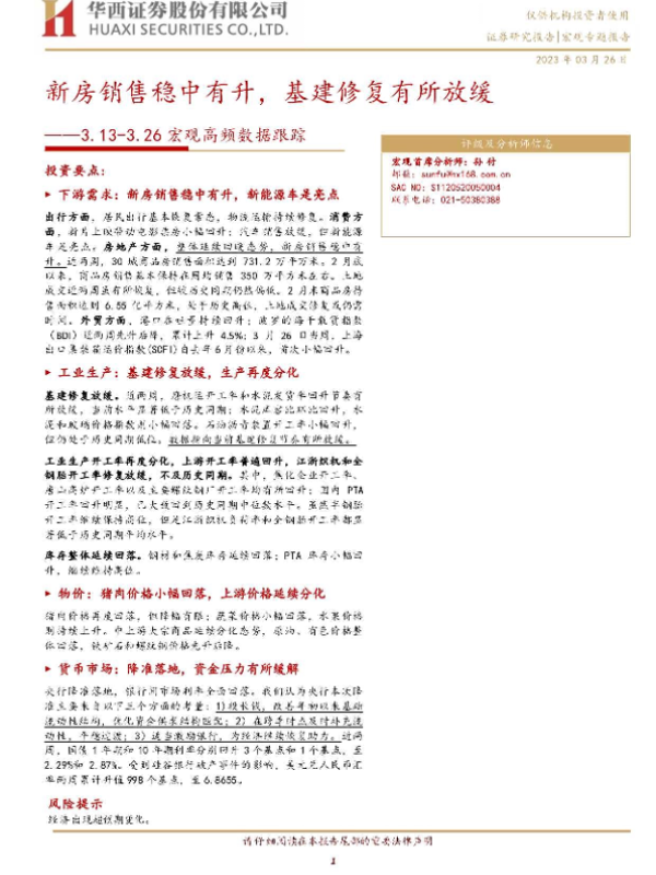 【华西证券】【20230326】宏观高频数据跟踪:新房销售稳中有升,基建修复有所放缓-16页 宏观策略