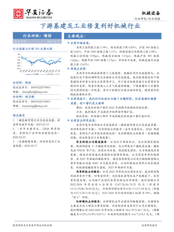 【华安证券】【20230227】机械设备行业周报:下游基建及工业修复利好机械行业-24页 行业研究