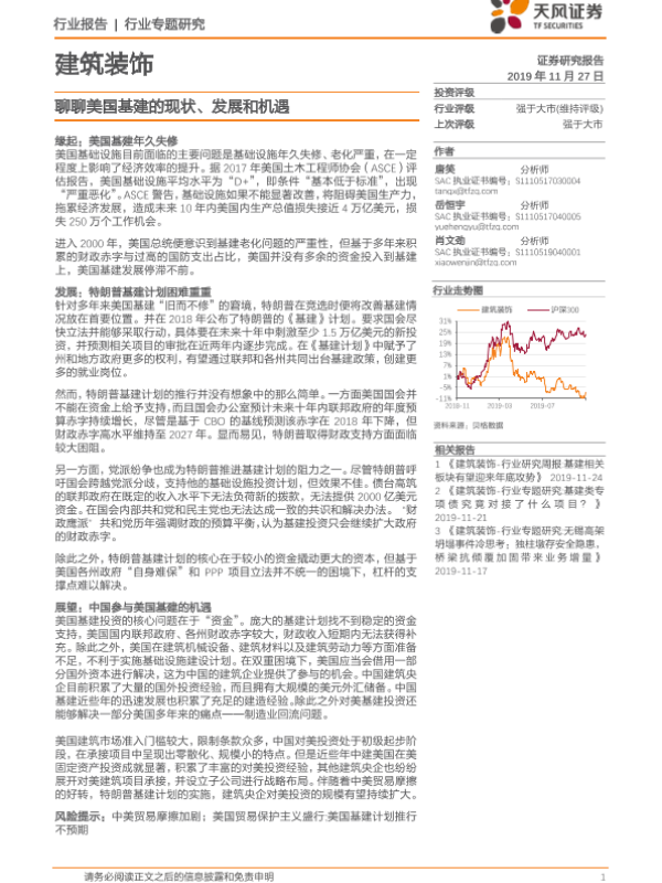 【天风证券】【20191127】建筑装饰行业专题研究:聊聊美国基建的现状、发展和机遇-21页 行业研究