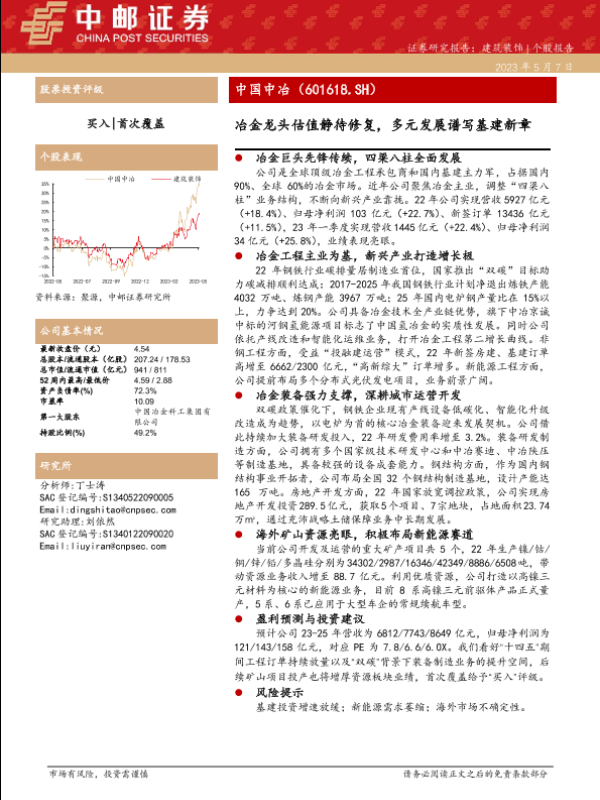 【中邮证券】【20230507】中国中冶-601618.SH-冶金龙头估值静待修复,多元发展谱写基建新章-35页 行业研究