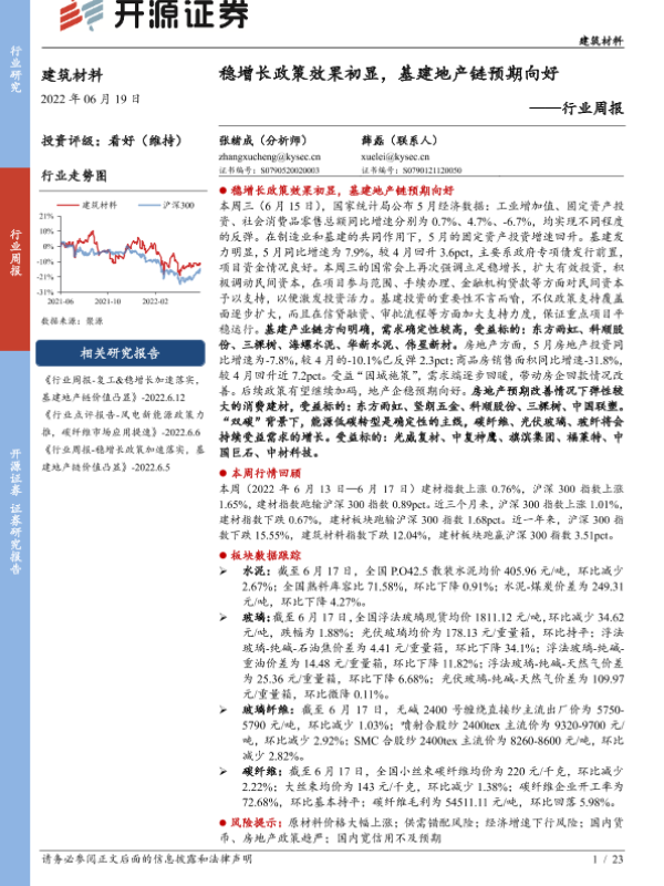 【开源证券】【20220619】建筑材料行业周报:稳增长政策效果初显,基建地产链预期向好-23页 行业研究