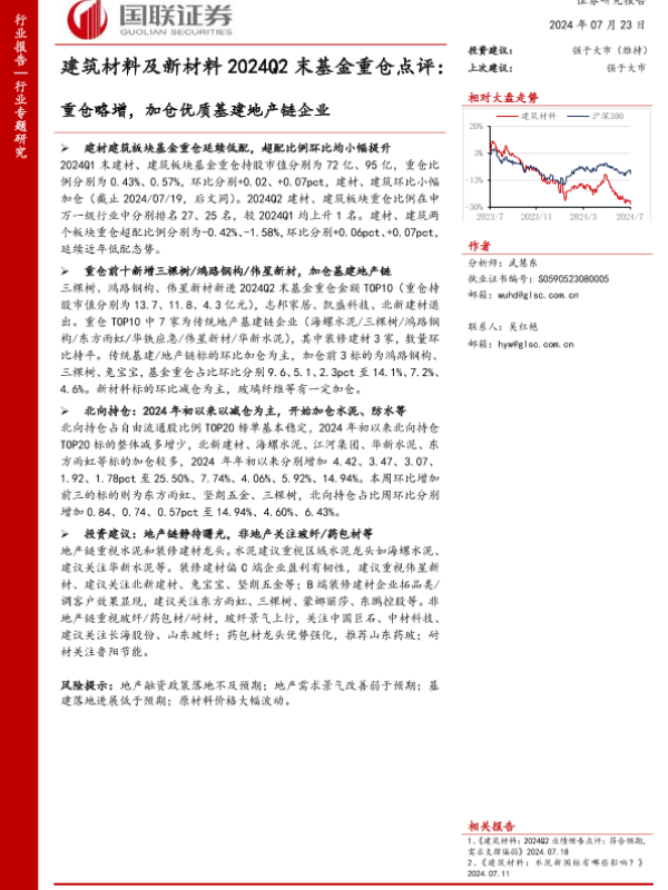 【国联证券】【20240723】建筑材料及新材料2024Q2末基金重仓点评:重仓略增,加仓优质基建地产链企业-9页 行业研究