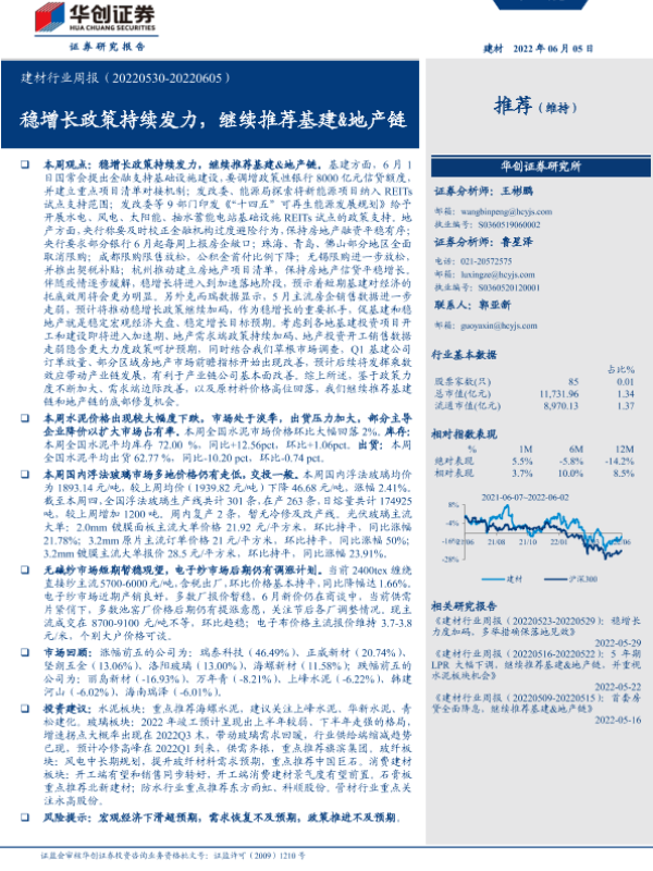 【华创证券】【20220605】建材行业周报:稳增长政策持续发力,继续推荐基建&地产链-19页 行业研究