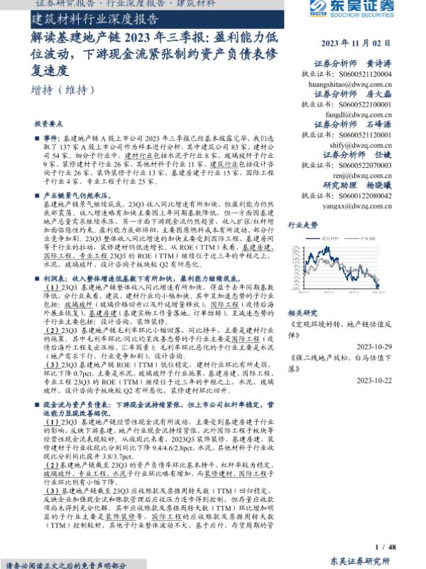 【东吴证券】【20231102】解读基建地产链2023年三季报:盈利能力低位波动,下游现金流紧张制约资产负债表修复速度-48页 行业研究
