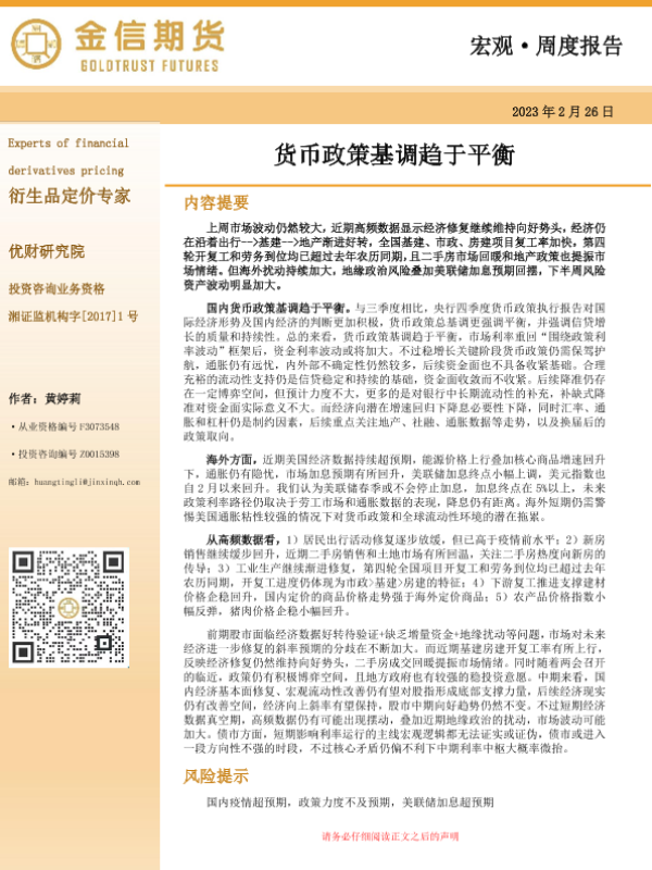 【金信期货】【20230226】20230226-金信期货-宏观·周度报告_货币政策基调趋于平衡-13页 宏观策略