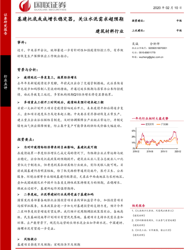 【国联证券】【20200210】基建托底或成增长稳定器,关注水泥需求超预期-4页 行业研究