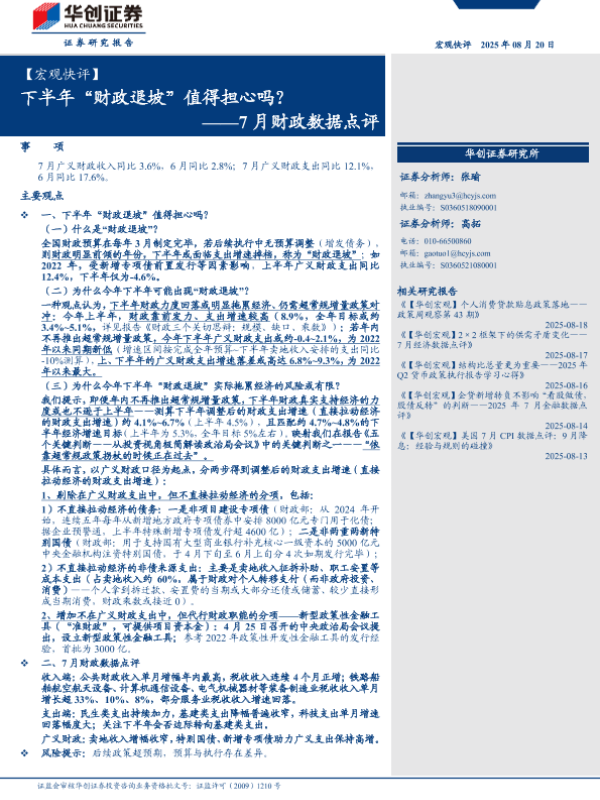 【华创证券】【202508】下半年“财政退坡”值得担心吗?——7月财政数据点评-17页 证券期货研究报告