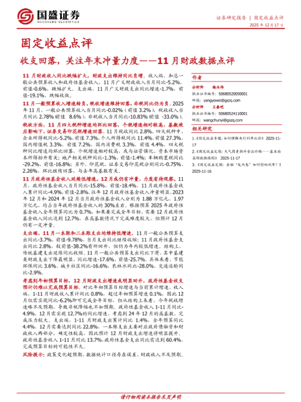 【国盛证券】【2025】收支回落,关注年末冲量力度——11月财政数据点评-7页 证券期货研究报告