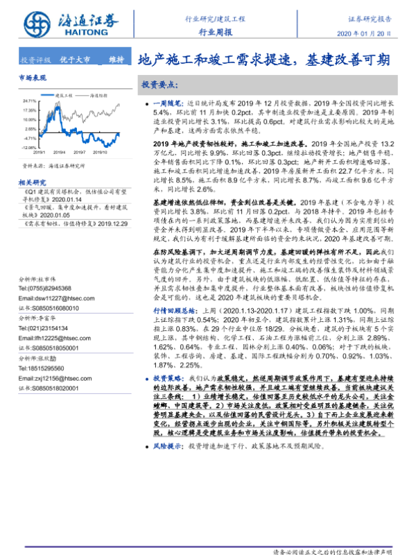 【海通证券】【20200120】建筑工程行业周报:地产施工和竣工需求提速,基建改善可期-6页 行业研究