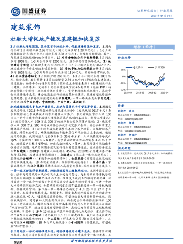 【国盛证券】【20190414】建筑装饰行业周报:社融大增促地产链及基建链加快复苏-12页 行业研究