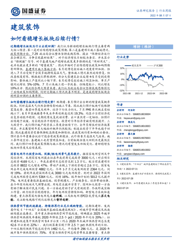 【国盛证券】【20220807】建筑装饰行业周报:如何看稳增长板块后续行情?-10页 行业研究