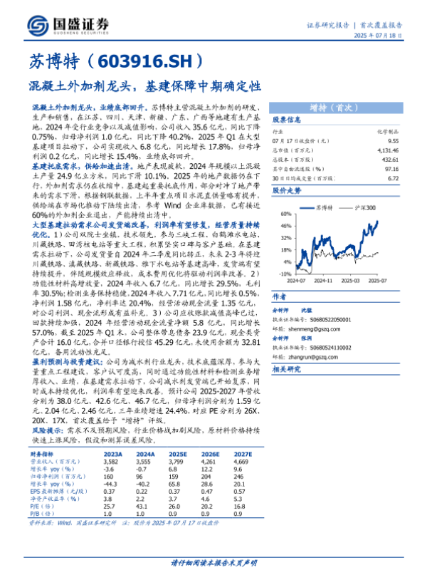 【国盛证券】【20250718】苏博特-603916.SH-混凝土外加剂龙头,基建保障中期确定性-20页 公司研究