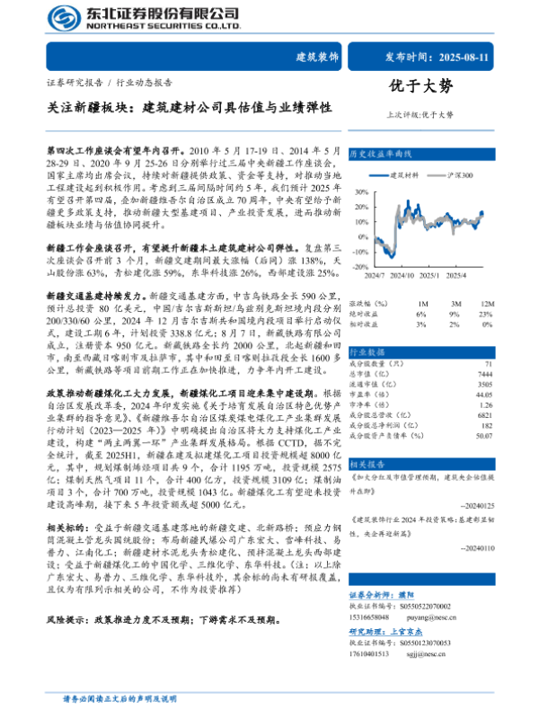 【东北证券】【20250811】关注新疆板块:建筑建材公司具估值与业绩弹性-3页 行业研究