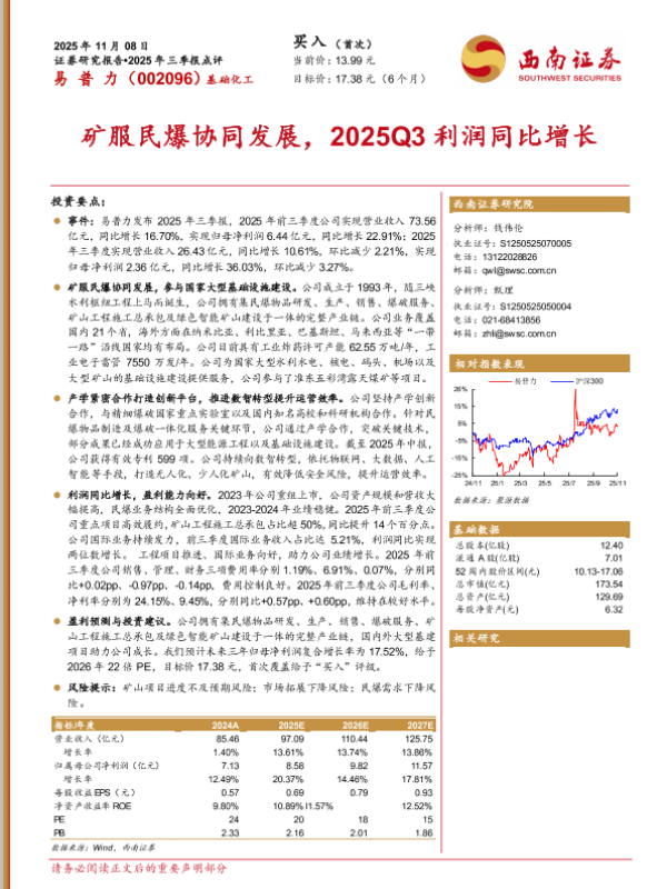 【西南证券】【202511】2025年三季报点评:矿服民爆协同发展,2025Q3利润同比增长-12页 证券期货研究报告