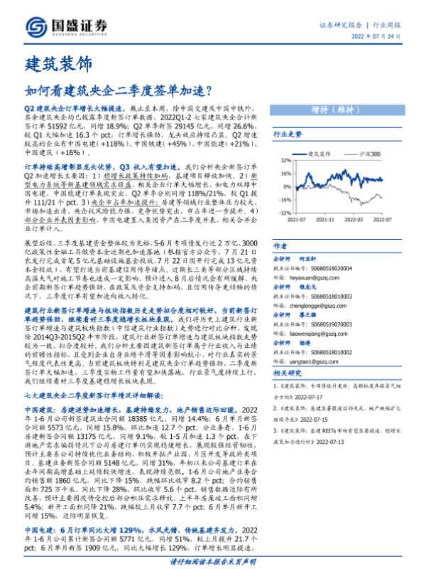 【国盛证券】【20220724】建筑装饰行业周报:如何看建筑央企二季度签单加速?-13页 行业研究
