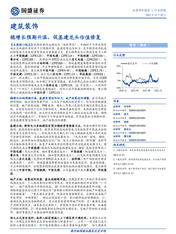 【国盛证券】【20211205】建筑装饰行业周报:稳增长预期升温,促基建龙头估值修复-12页 行业研究