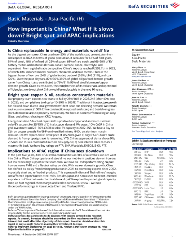 【BofA Securities】【20230915】Basic Materials - Asia-Pacific (H) How important is China ....-59页 行业研究