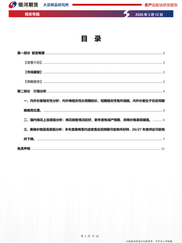 【银河期货】【202603】农产品板块研发报告 棉系专题 2026年 3月 12日-12页 证券期货研究报告
