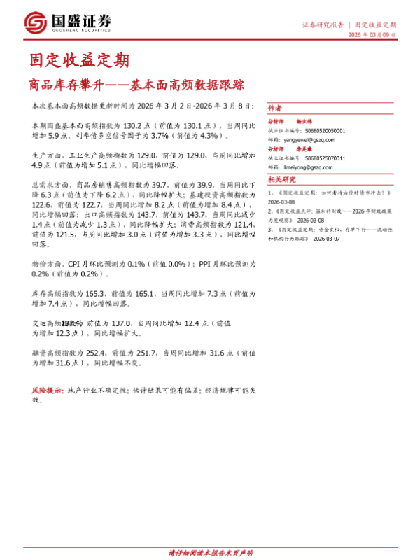 【国盛证券】【202603】固定收益定期:商品库存攀升——基本面高频数据跟踪-20页 证券期货研究报告
