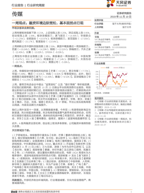 【天风证券】【20191110】传媒一周观点:融资环境边际宽松,基本面拐点已现-28页 行业研究