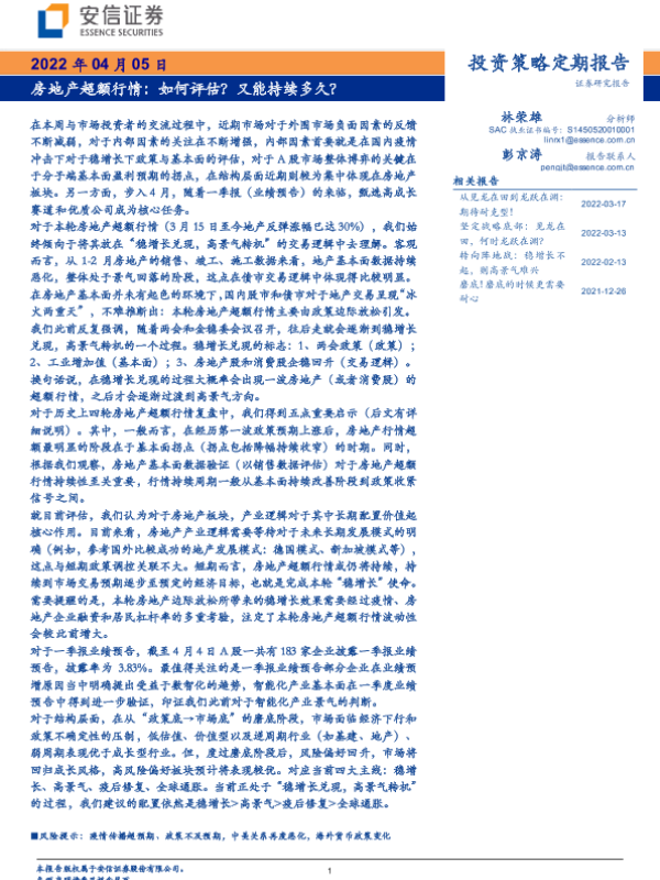 【安信证券】【20220405】投资策略定期报告:房地产超额行情,如何评估?又能持续多久?-35页 行业研究