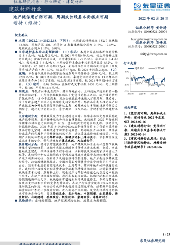 【东吴证券】【20220220】建筑材料行业:地产链信用扩张可期,周期成长股基本面拐点可期-23页 行业研究