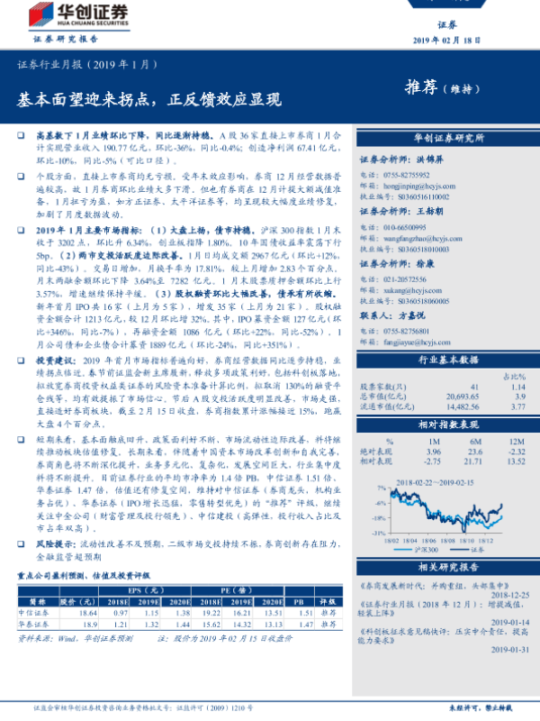 【华创证券】【20190218】证券行业月报:基本面望迎来拐点,正反馈效应显现-7页 行业研究