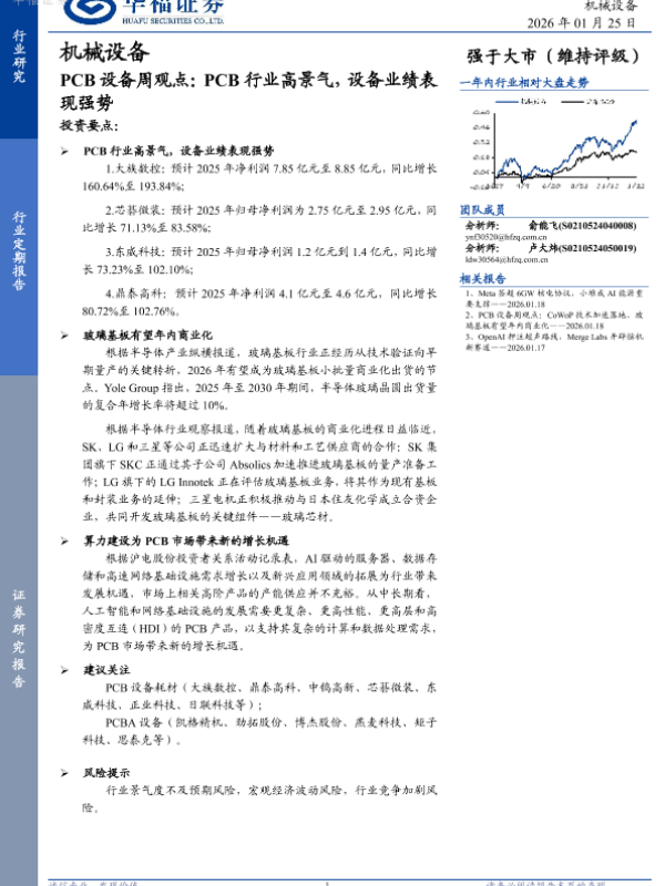 【华福证券】【202601】PCB设备周观点:PCB行业高景气,设备业绩表现强势-2页 证券期货研究报告