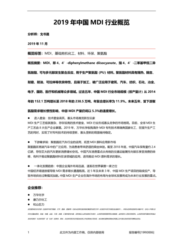 【头豹研究院】【201911】2019年中国MDI行业概览-30页 行业研究