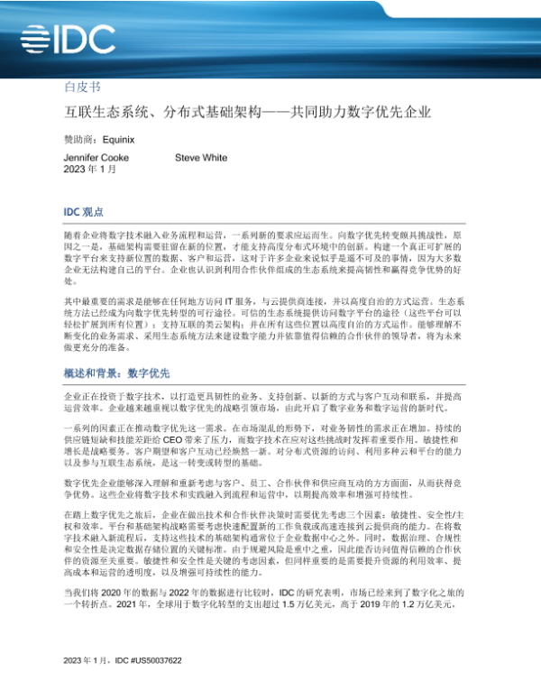 【IDC】【202301】互联生态系统、分布式基础架构——共同助力数字优先企业-11页 白皮书