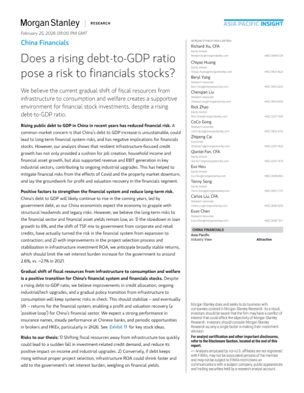 【Morgan Stanley】【2024】China Financials Does a rising debt-to-GDP ratio pose a risk to financials stocks?-59页 证券期货研究报告