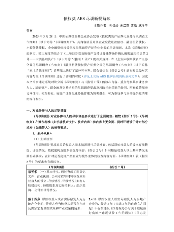 【中国证券投资基金业协会】【20250328】债权类 ABS 尽调新规解读-13页 政策文件