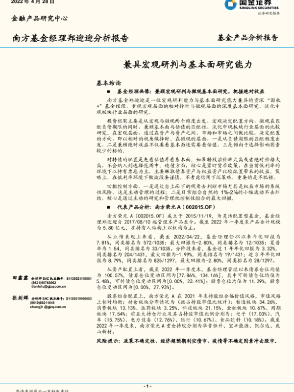 【国金证券】【20220428】基金产品分析报告:兼具宏观研判与基本面研究能力-16页 行业研究