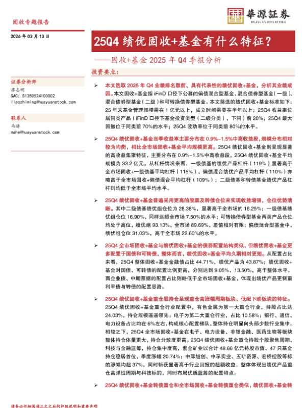【华源证券】【202603】25Q4绩优固收+基金有什么特征?——固收+基金 2025年 Q4季报分析-21页 证券期货研究报告