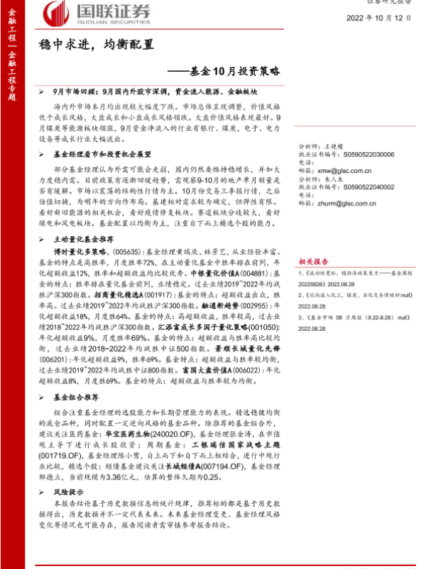 【国联证券】【20221012】基金10月投资策略:稳中求进,均衡配置-23页 行业研究