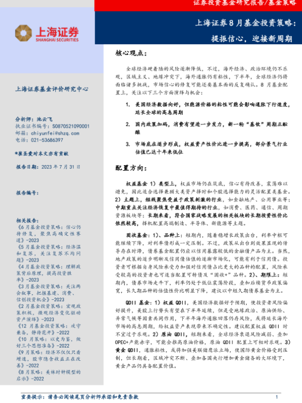 【上海证券】【20230731】8月基金投资策略:提振信心,迎接新周期-12页 宏观策略