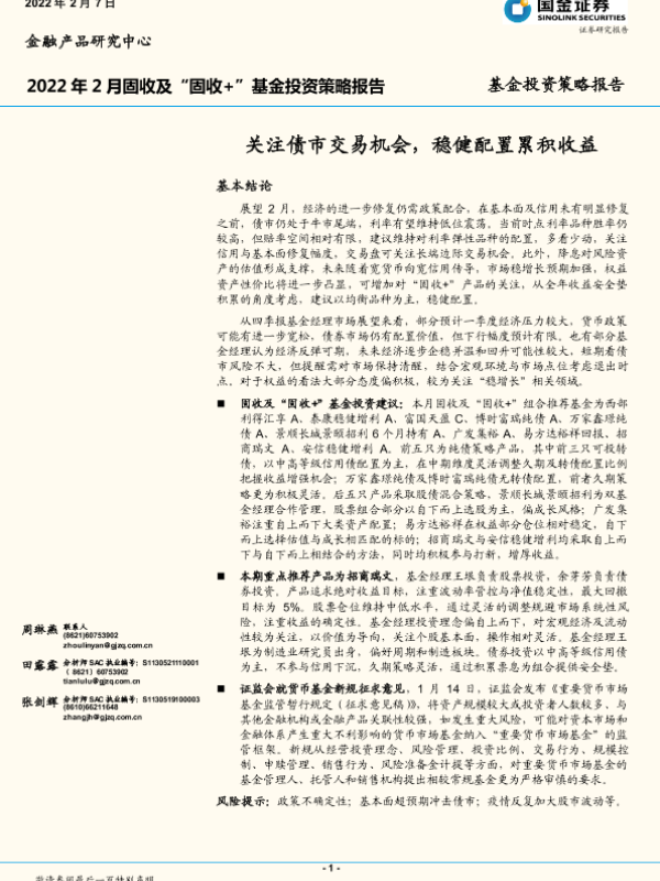 【国金证券】【20220207】基金投资策略报告:关注债市交易机会,稳健配置累积收益-21页 行业研究