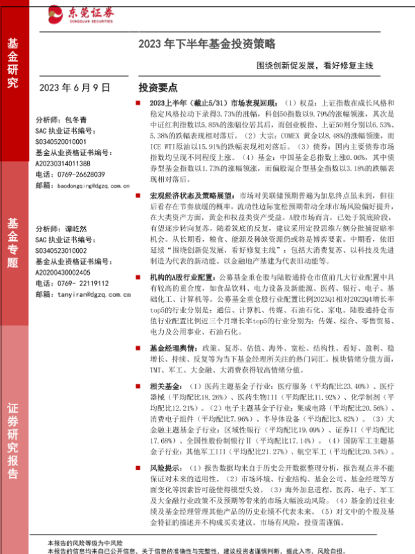 【东莞证券】【20230609】2023年下半年基金投资策略:围绕创新促发展,看好修复主线-23页 行业研究