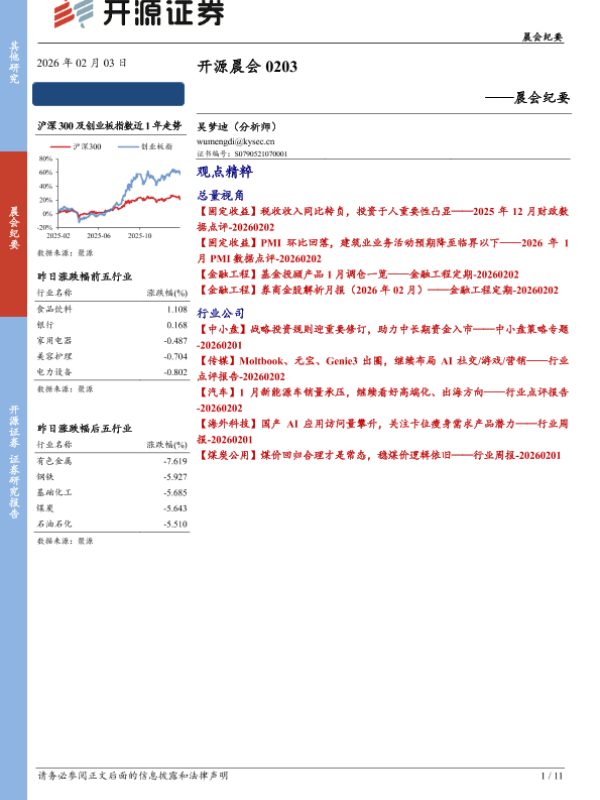 【开源证券】【202602】开源晨会 0203——晨会纪要-11页 会议纪要