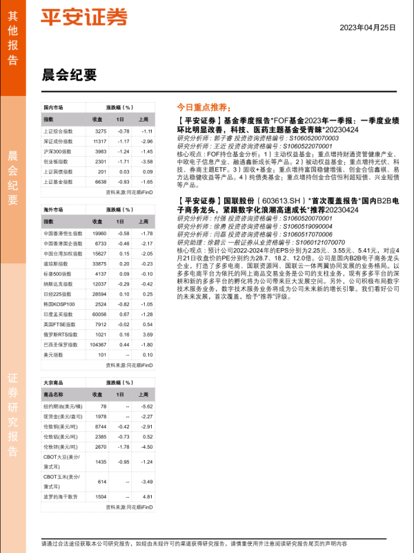 【平安证券】【20230425】晨会纪要-20230425-平安证券-15页 行业研究