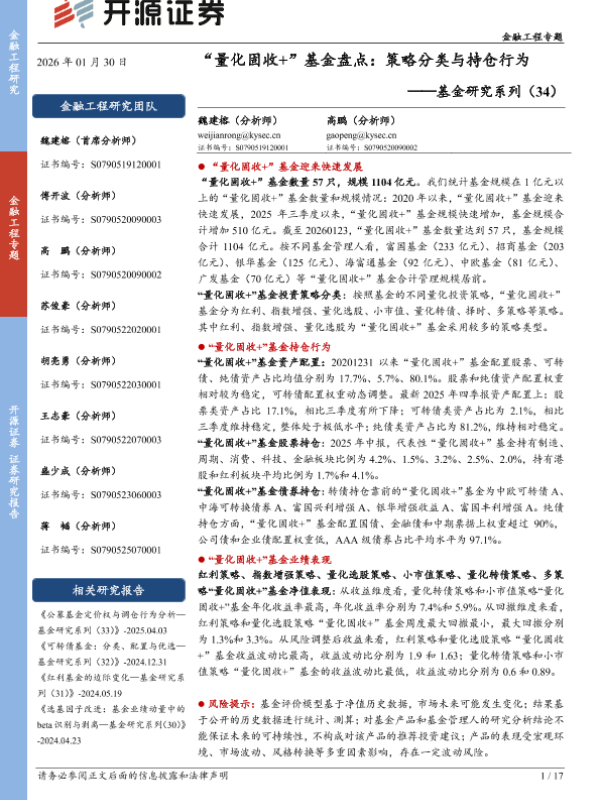 【开源证券】【202601】“量化固收+”基金盘点:策略分类与持仓行为-17页 证券期货研究报告