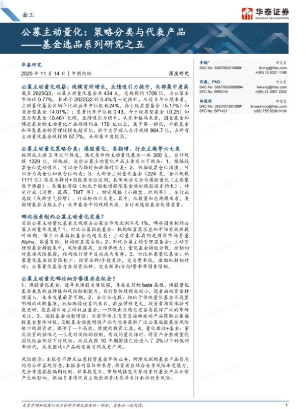 【华泰证券】【202511】公募主动量化:策略分类与代表产品——基金选品系列研究之五-25页 证券期货研究报告