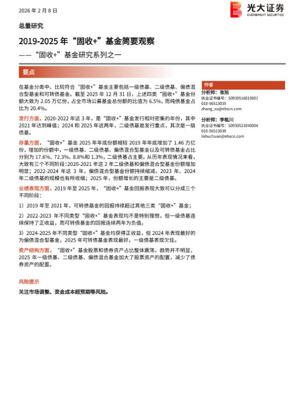 【光大证券】【202602】2019-2025年“固收+”基金简要观察——“固收+”基金研究系列之一-11页 证券期货研究报告