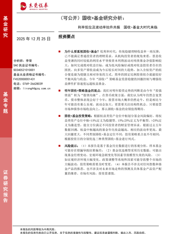 【东莞证券】【2025】固收+基金研究分析_利率低位及波动率抬升共振_固收+基金大时代来临-13页 证券期货研究报告
