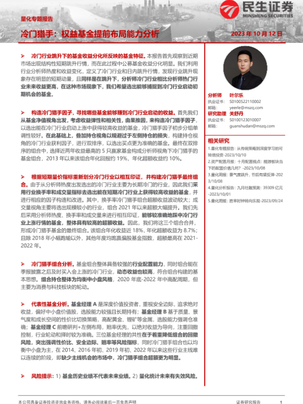 【民生证券】【20231012】量化专题报告:冷门猎手,权益基金提前布局能力分析-21页 行业研究