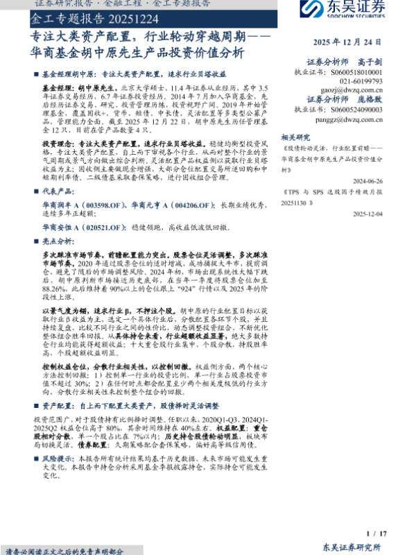 【东吴证券】【202512】专注大类资产配置,行业轮动穿越周期—— 华商基金胡中原先生产品投资价值分析-17页 证券期货研究报告