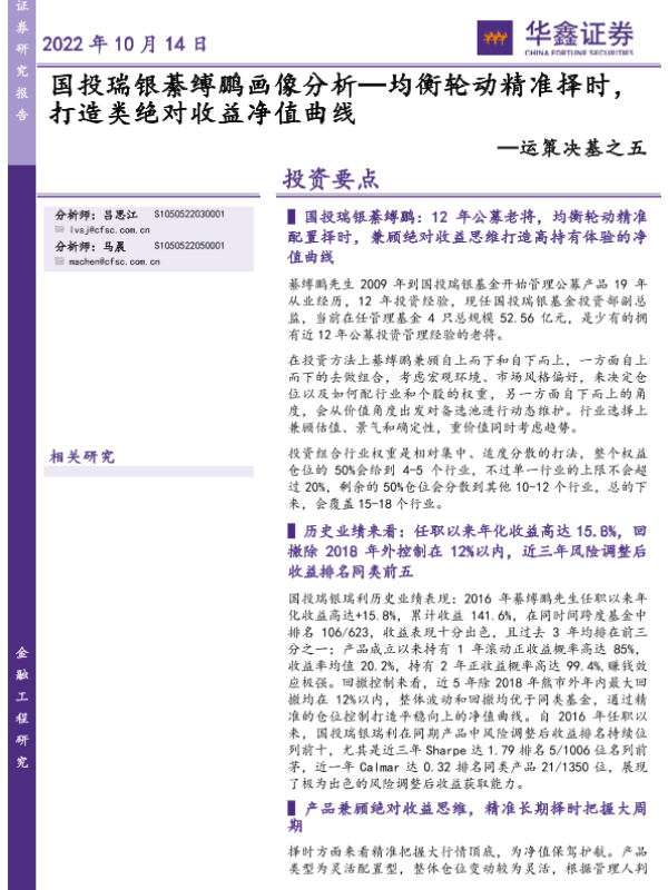 【华鑫证券】【20221014】运策决基之五:国投瑞银綦缚鹏画像分析,均衡轮动精准择时,打造类绝对收益净值曲线-23页 行业研究